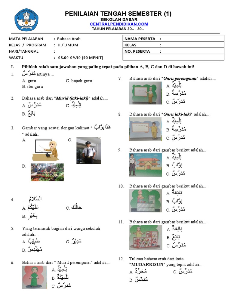 Bahasa Arab, dengan kekayaan kosakata, struktur tata bahasa yang unik, dan keindahannya, menjadi salah satu mata pelajaran penting yang diajarkan di banyak jenjang pendidikan di Indonesia. Bagi siswa kelas 2, penguasaan bahasa Arab di semester 1 menjadi fondasi krusial untuk pemahaman materi di semester berikutnya dan seterusnya. Untuk membantu para siswa, guru, dan orang tua dalam proses belajar mengajar, tersedianya akses terhadap soal-soal Penilaian Tengah Semester (PTS) Bahasa Arab kelas 2 semester 1 menjadi sangat berharga. Artikel ini akan membahas secara mendalam mengapa mengunduh soal-soal PTS ini penting, jenis-jenis soal yang mungkin dihadapi, tips belajar efektif, serta bagaimana memanfaatkan sumber daya ini secara optimal.
